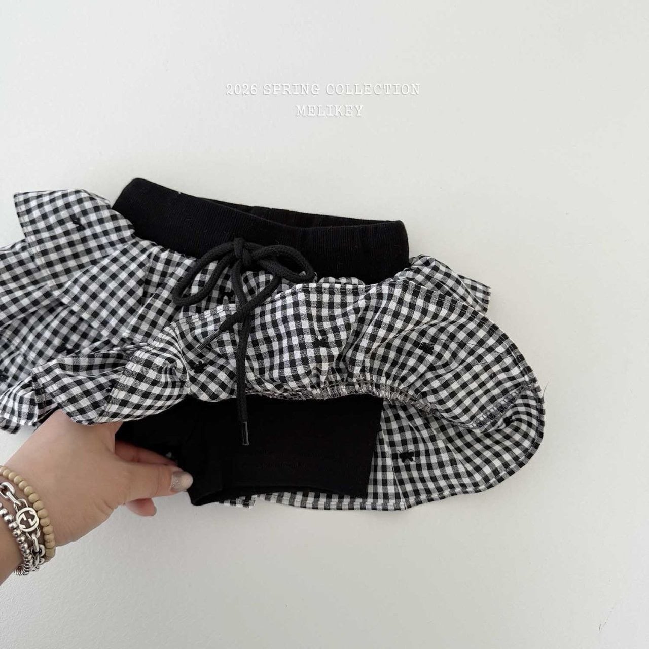 【即納】MELIKEY/Check Ribbon Cancan SK(black/M)